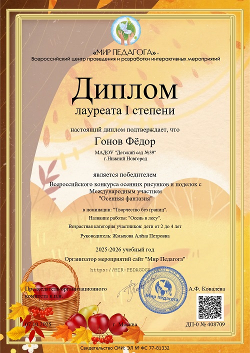 | 1 | Всероссийский конкурс "Изумрудный город" | сентябрь | Диплом победителя ( 2 место) | |||||