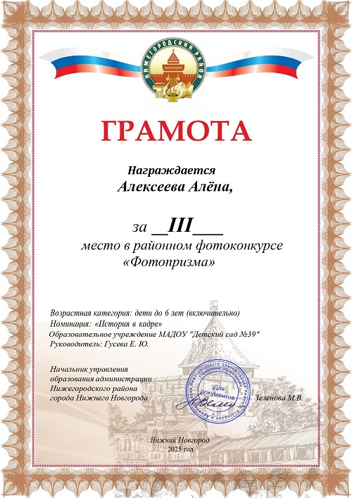 | 5 | Районные соревнования по мини - футболу между командами дошкольных образовательных учреждений Нижегородского района | март | Грамота 2 место | |||||